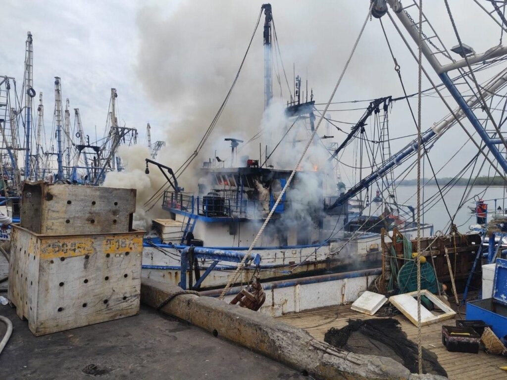 Tres trabajadores lesionados deja el incendio de barco en el muelle de Mazatlán
