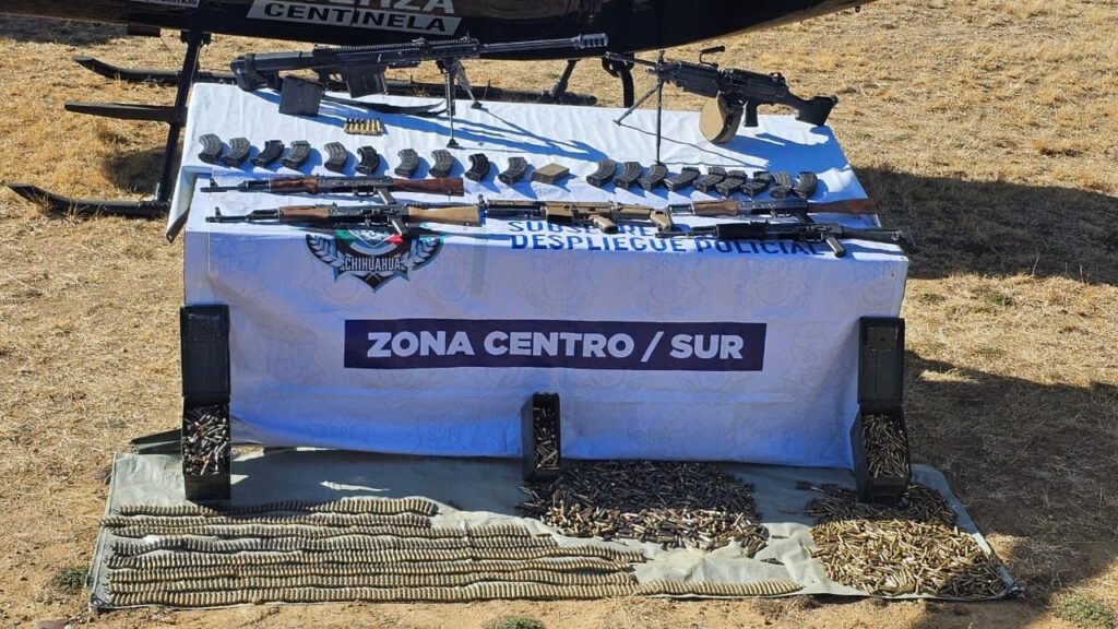 H. Cd. de Chihuahua.- (En Blanco y Negro) Durante operativos de seguridad y vigilancia realizados este fin de semana en el municipio de Guachochi, elementos de la Guardia Nacional (GN) y del Ejército Mexicano lograron el aseguramiento de armamento de alto poder, municiones y vehículos con reporte de robo. De acuerdo con información de la […]