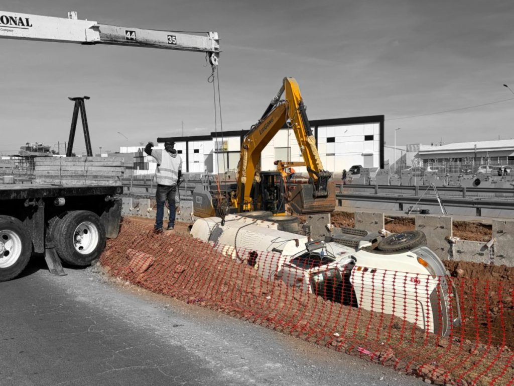 Publicidad H. Cd de Chihuahua.- Una pipa que realizaba labores en la construcción del puente ubicado en el cruce de las avenidas Los Nogales e Industrias volcó mientras regaba agua para compactar el terreno. El accidente ocurrió cuando las llantas de uno de los costados comenzaron a hundirse, lo que, debido al peso de la […]