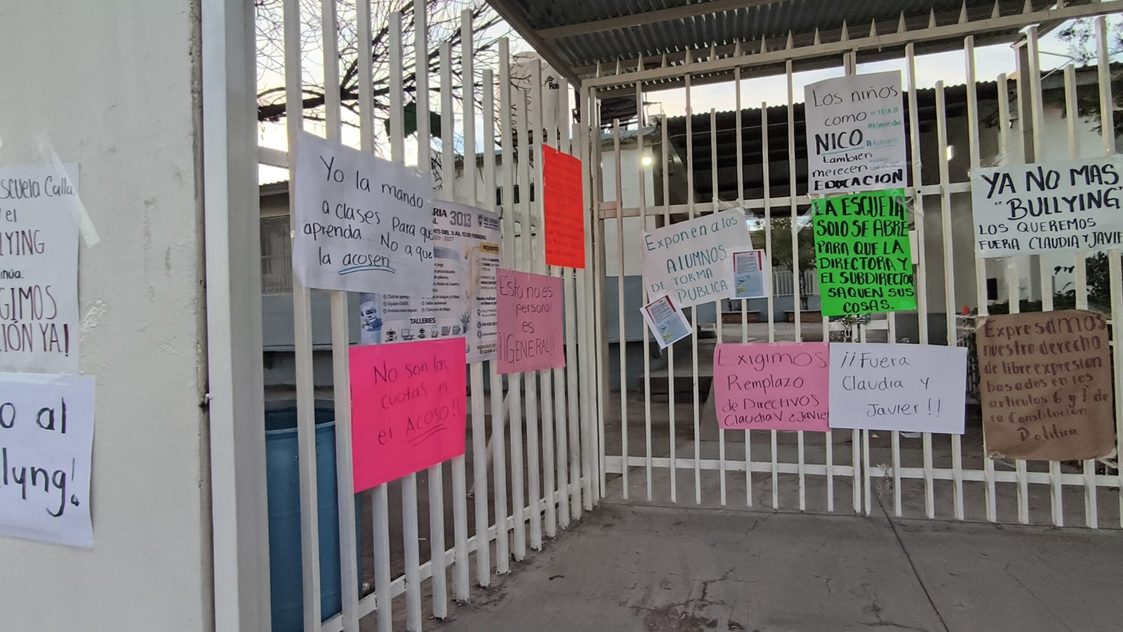 Los inconformes señalaron que han presentado quejas desde hace meses sin recibir solución por parte de la directora y el subdirector. También denunciaron que no se ha convocado a una asamblea para elegir mesa directiva y que se exhibe a los alumnos que no pagan la “aportación voluntaria”.