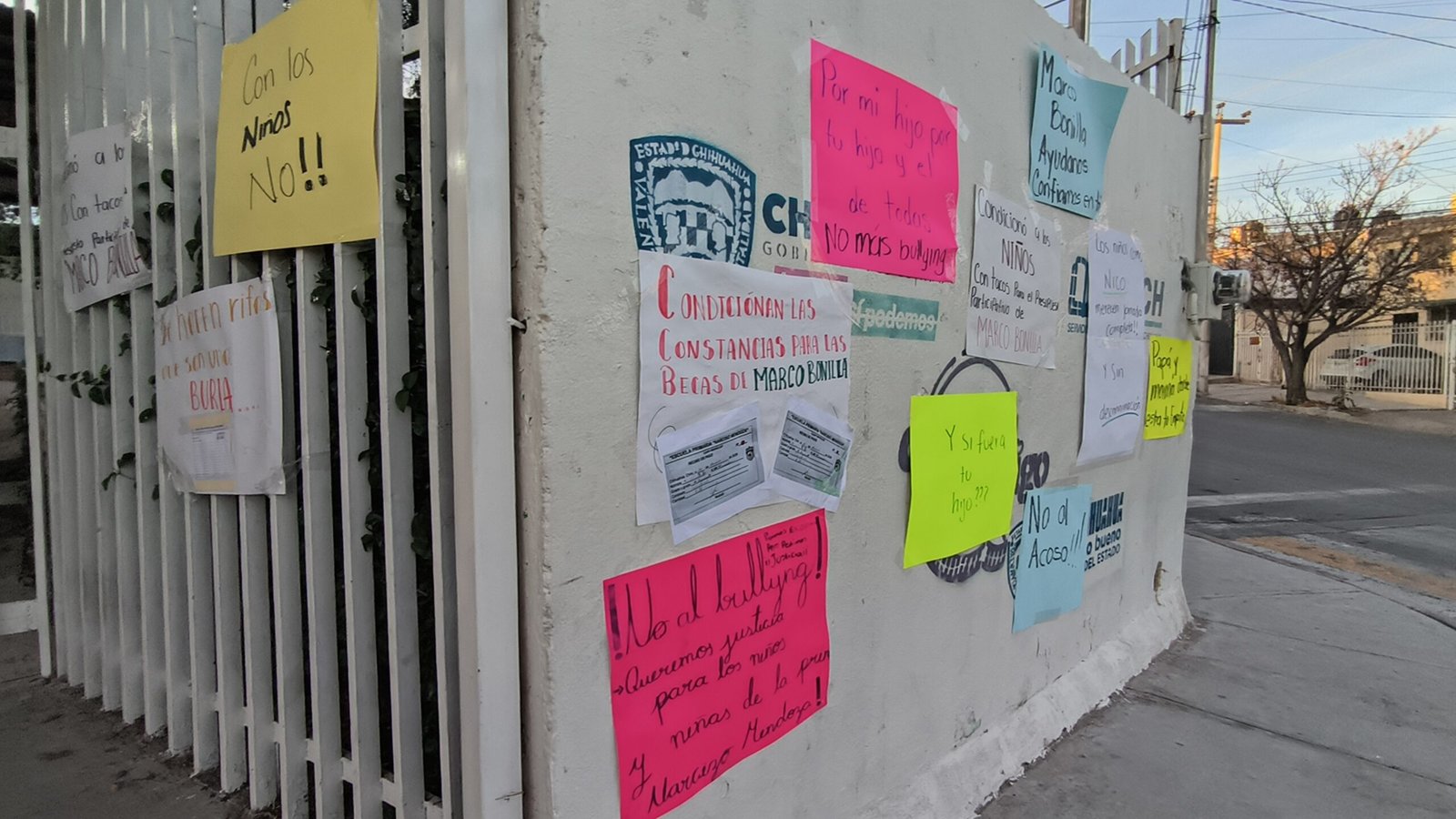 H. Cd de Chihuahua.- Por segundo día consecutivo, padres y madres de familia bloquearon el acceso a la escuela primaria federal Narciso Mendoza, ubicada en la colonia Mármol 1, para exigir respuestas claras sobre el manejo de los recursos y denunciar casos de acoso escolar.