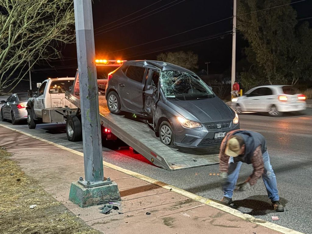 Publicidad H. Ciudad de Chihuahua.- Choque contra poste y camellón en Periférico R. Almada. Policía Vial ya toma nota del accidente que dejó daños cuantiosos. La mujer circulaba de oeste a este en un Seat Ibiza cuando, presuntamente por exceso de velocidad y falta de pericia, impactó primero el camellón y después un poste de […]