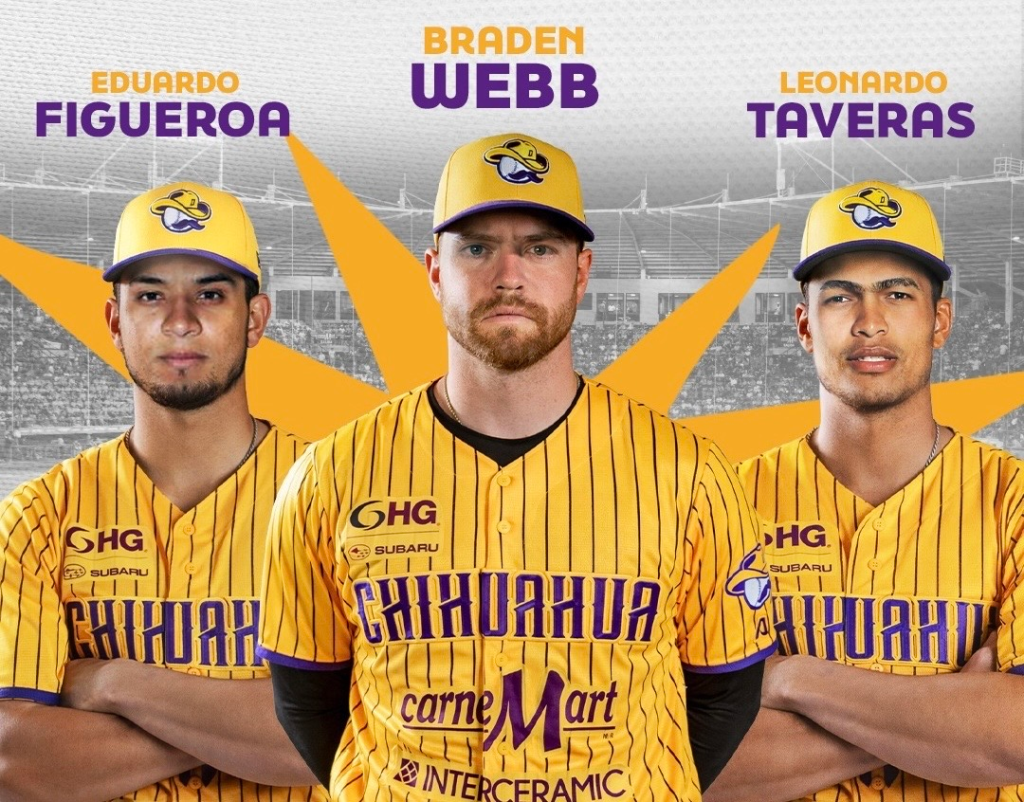 Los Dorados de Chihuahua anunciaron las incorporaciones de los lanzadores Braden Webb, Leonardo Taveras y Eduardo Figueroa en la víspera de la campaña 2026.