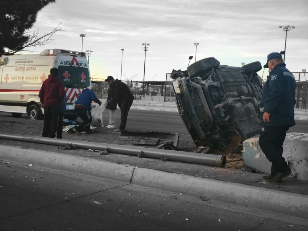 Publicidad H. Cd de Chihuahua.- Un vehículo Acura color negro volcó la mañana de este lunes sobre la Vialidad Sacramento, a la altura del Polideportivo, luego de que presuntamente se le ponchara una llanta, lo que provocó que el conductor perdiera el control y se impactara contra un poste. Al lugar acudieron elementos de la […]
