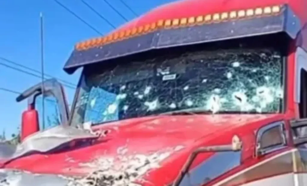 En el parabrisas del tractocamión se contabilizaron poco más de 20 impactos, lo que dejó quebrado el vidrio y con poca visibilidad para el conductor.
