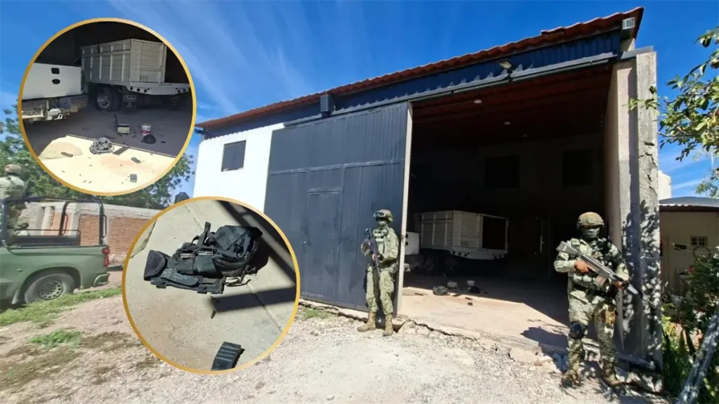 Así fue el cateo de un almacén en Guamúchil, había vehículos blindados, cargadores y municiones