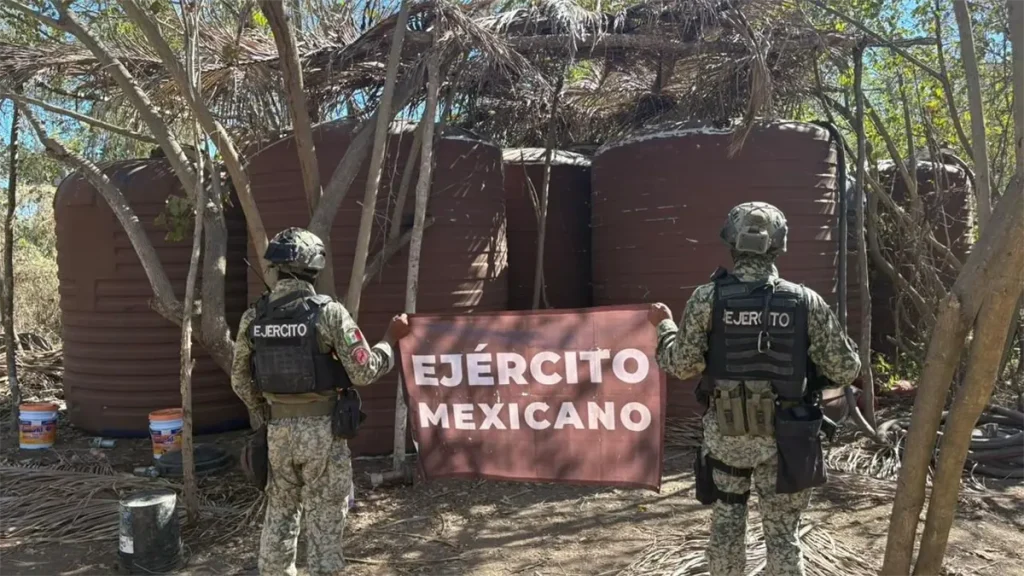 Elementos militares localizan contenedores de combustible ilegal en poblado de Mazatlán