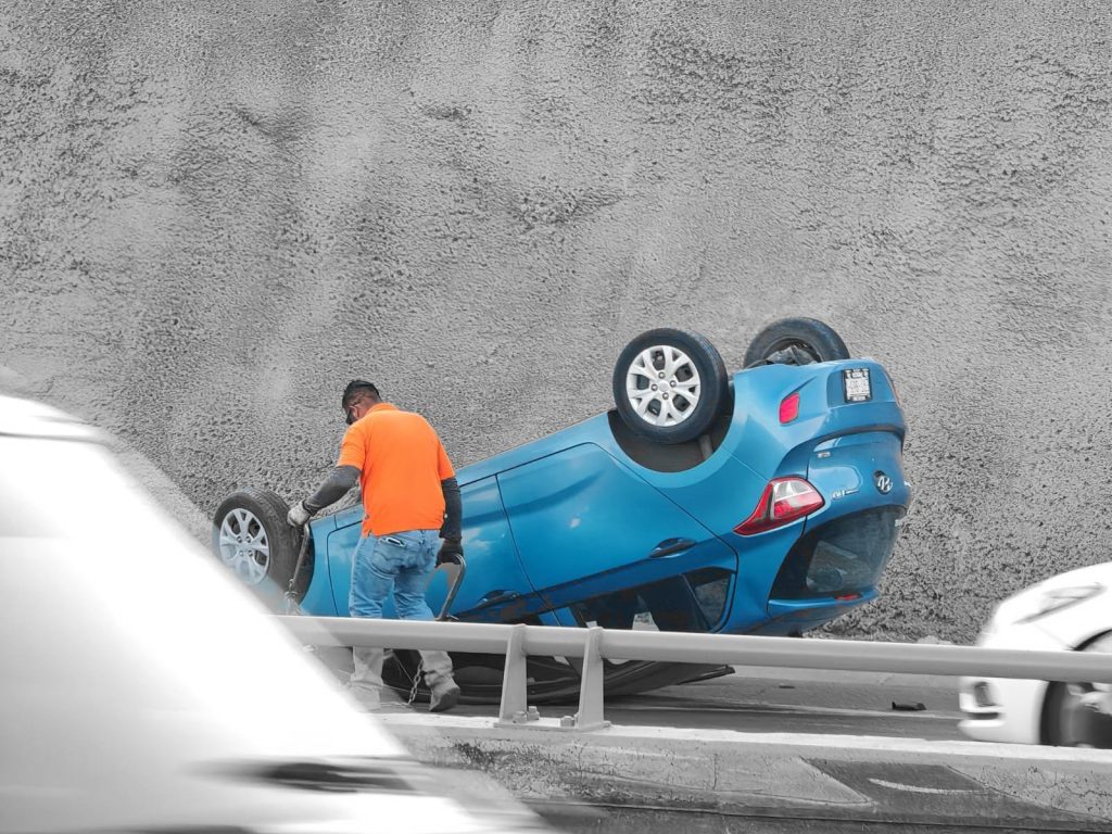 ¡Se salva de milagro! Conductor vuelca tras chocar contra el muro en el Juventud