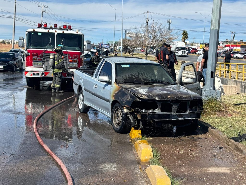 H. Ciudad de Chihuahua, Chih.- Una pick-up Volkswagen Pointer fue consumida parcialmente por las llamas esta tarde sobre la Avenida Tecnológico, en sentido de norte a sur, generando una columna de humo visible desde varios puntos de la colonia Los Arroyos.