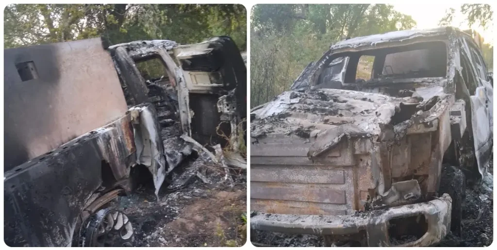 Calcinadas quedaron las camionetas blindadas tras los enfrentamientos en la Sierra de Mocorito