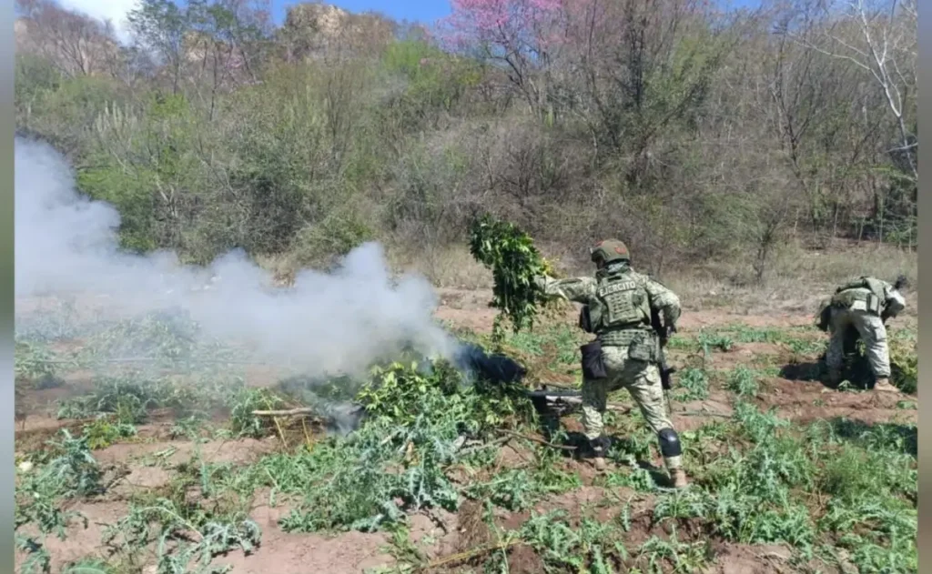 Durante acciones en la zona serrana de Badiraguato, las autoridades lograron asegurar y destruir varios plantíos de mariguana y amapola.