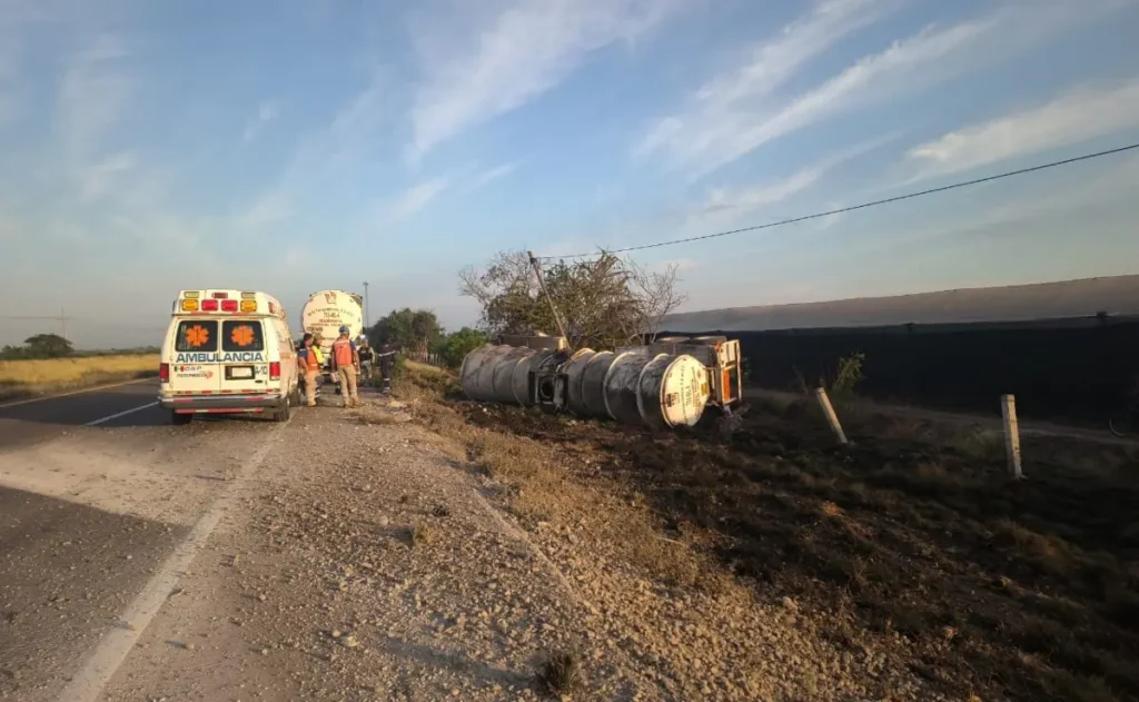 Los hechos se dieron durante la mañana del sábado cuando se indicó que el conductor transitaba con un doble remolque por la autopista y al llegar a la altura de Mezquitillo el conductor perdió el control para después desprenderse la pipa para después terminar volcado.