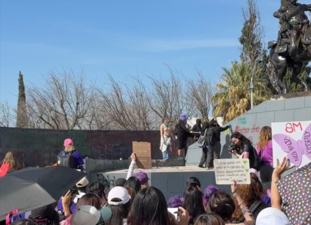 Vandalizan el monumento a Pancho Villa durante concentración previa a la marcha del 8M