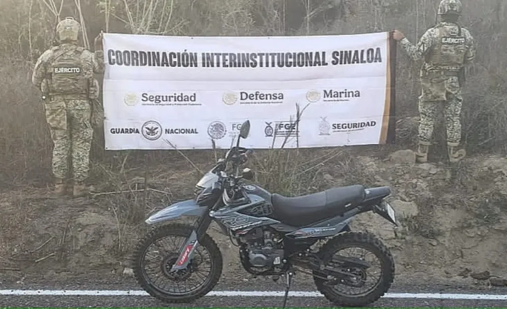 En otra acción, los elementos militares que realizaban trabajos de reconocimiento terrestre en la colonia Real del Valle, en el municipio de Mazatlán, localizaron una motocicleta en aparente estado de abandono. Al acercarse y verificar el estatus legal de la unidad, fueron informados de que había sido despojada días antes.