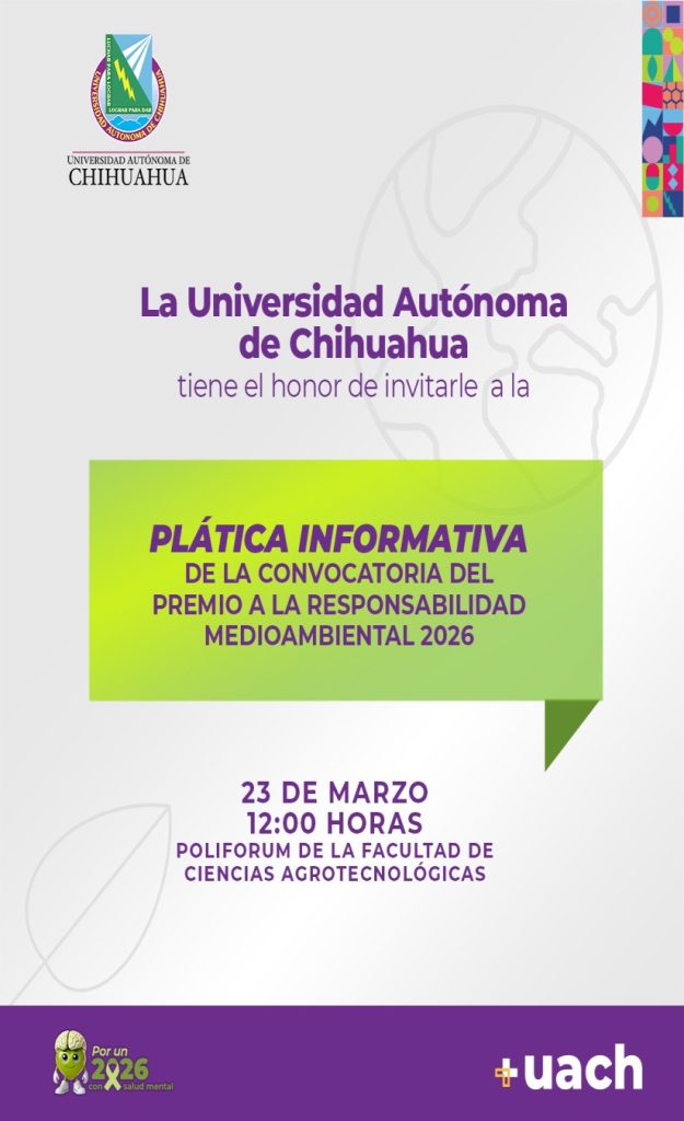 ¿Quieres saber más sobre la Convocatoria del Premio a la Responsabilidad Medioambiental 2026?, la UACH te invita a su plática informativa, ¡asiste!