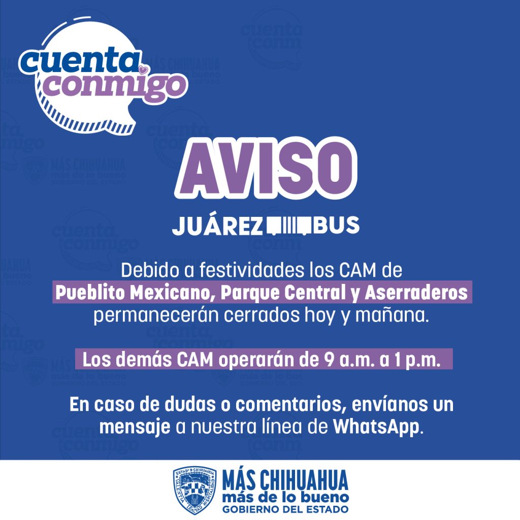 La Secretaría General de Gobierno, a través de la Operadora de Transporte (OTV), informó que por motivo de las festividades de Semana Santa, los Centros de Atención a la Movilidad (CAM) ubicados en Pueblito Mexicano, Aserraderos y Parque Central, permanecerán cerrados este jueves y viernes. Los demás CAM fijos operarán en un horario especial de […]