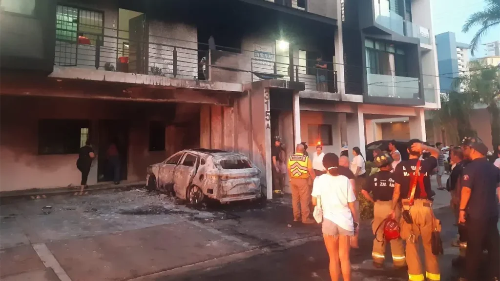 Un total de 27 personas evacuadas, dos vehículos afectados, uno de ellos en su totalidad, así como la afectación en un edificio de departamentos es el saldo de un incendio aparentemente provocado en las inmediaciones del Fraccionamiento Gaviotas, en plena zona turística de Mazatlán.