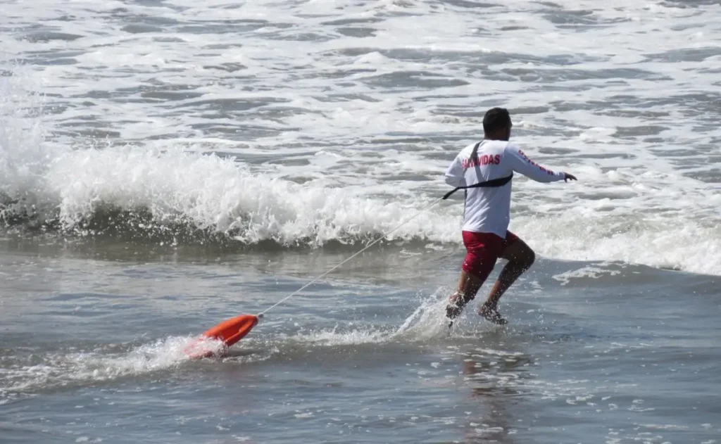 Gustavo Espinoza, comandante del cuerpo de salvavidas, informó que los recorridos se realizan de manera coordinada tanto por tierra como por mar, utilizando cuatrimotos, una moto acuática (Jetski) y el apoyo de ocho elementos distribuidos en distintos puntos de la zona.
