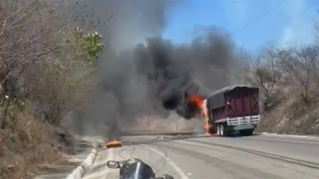 Se incendia camión en la Mazatlán-Durango; falla mecánica sería la causa