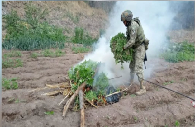 Elementos del Ejército Mexicano aseguraron dos áreas de concentración de sustancias químicas, así como un plantío de mariguana en el municipio de Culiacán. El hallazgo se registró al realizar reconocimientos terrestres en el marco de la “Operación Búsqueda, Localización y Destrucción de Laboratorios Clandestinos” en comunidades de la capital del estado. En las áreas de […]