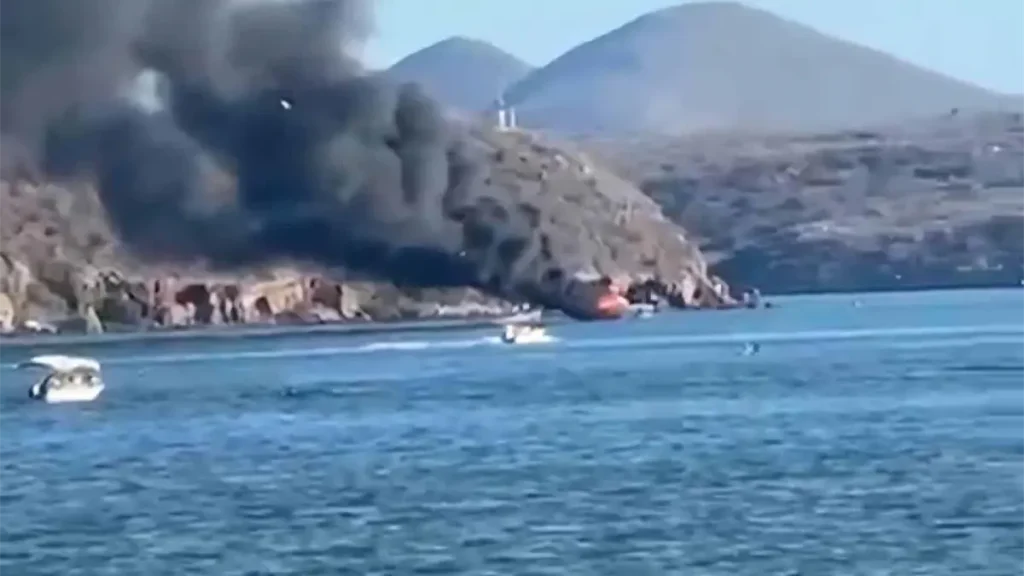Se incendia yate frente al malecón de Topolobampo; rescatan a todos los tripulantes