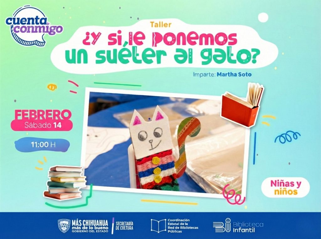 La Secretaría de Cultura extendió una invitación a participar en el taller gratuito “Y si le ponemos un suéter al gato” orientado a fortalecer el desarrollo sensorial entre niñas y niños. Esta actividad, dirigida a niños de 4 a 10 años, será impartida por la tallerista Martha Soto este sábado 14 de febrero, de […]