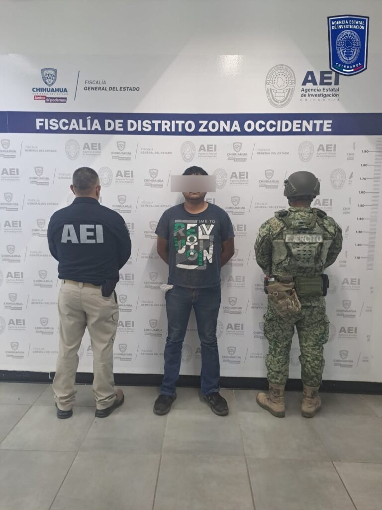 Las acciones coordinadas del personal de la Agencia Estatal de Investigación (AEI) y de la Secretaría de la Defensa Nacional, permitieron detener a un masculino por delitos contra la salud, en la colonia Reforma de la ciudad de Cuauhtémoc. La detención de quien se identificó como Carlos Eduardo O. L., de 25 años de edad, […]