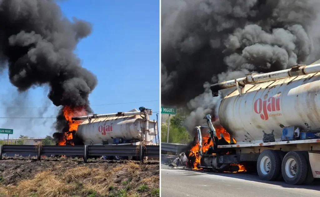 Se incendia pipa que transportaba alimento sobre la México 15 en Ahome