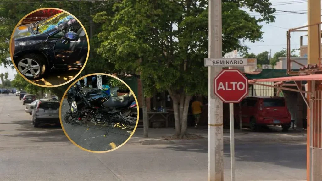 Conductora se pasa el alto y provoca choque en Los Mochis; motociclista termina hospitalizado