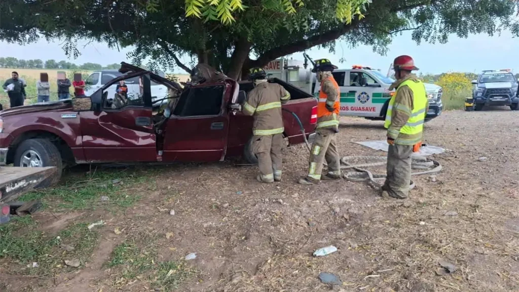 Se sale de la carretera a exceso de velocidad, choca contra un árbol y muere prensado en Guasave