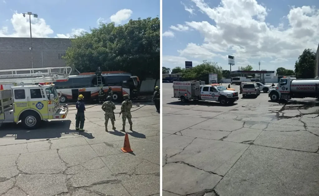 Cortocircuito en autobús moviliza a cuerpos de auxilio en la Central de Culiacán