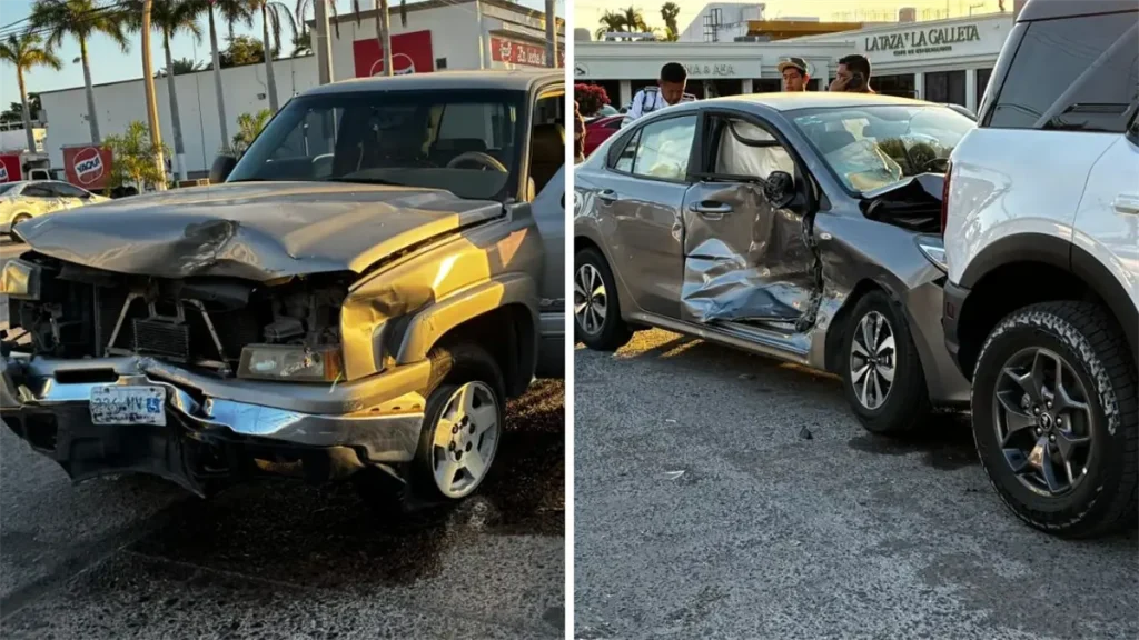 Camioneta presuntamente se pasa el alto y provoca carambola en el centro de Los Mochis