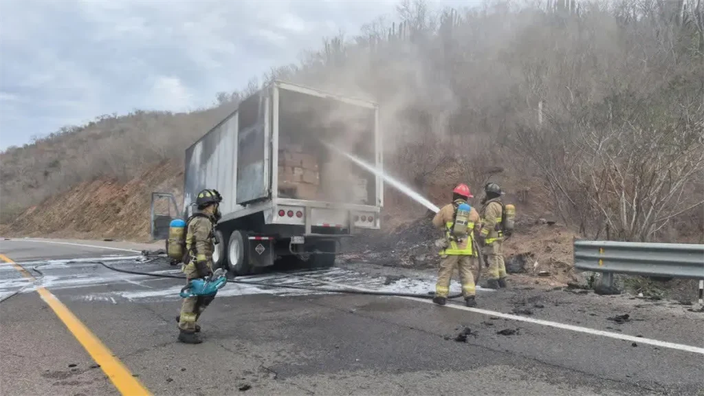 Tráiler se incendia en el Libramiento Mazatlán; no hay personas lesionadas