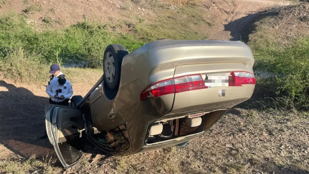 Aparatoso choque deja un vehículo volcado en canal en la carretera Guasave – Sinaloa de Leyva