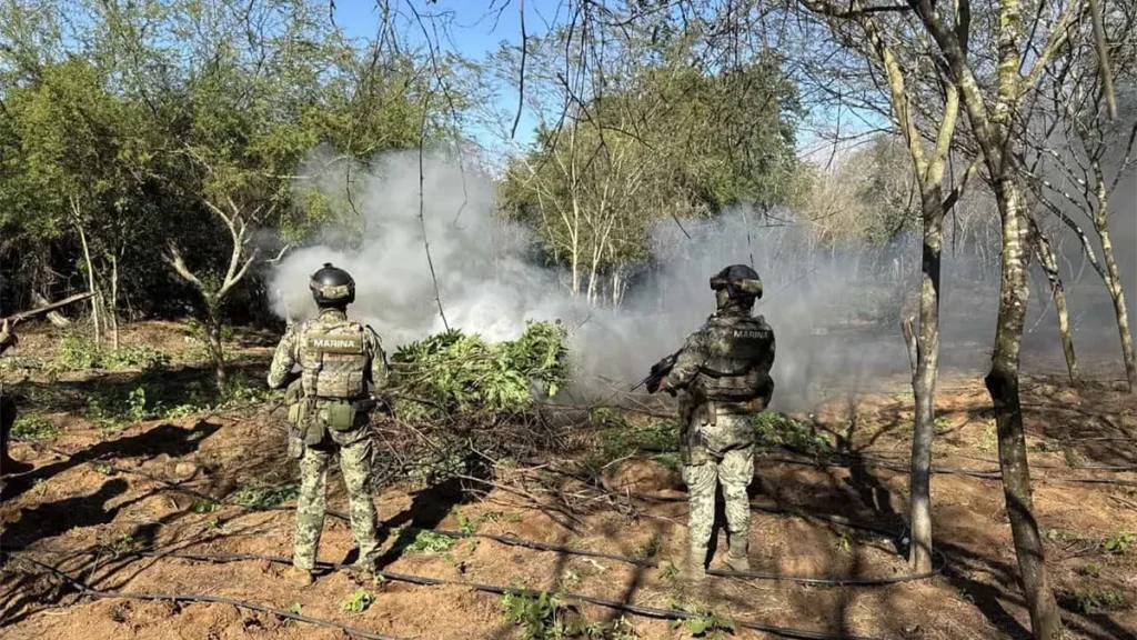 Marina destruye más de 20 mil plantas de mariguana en predio de La Cruz en Elota