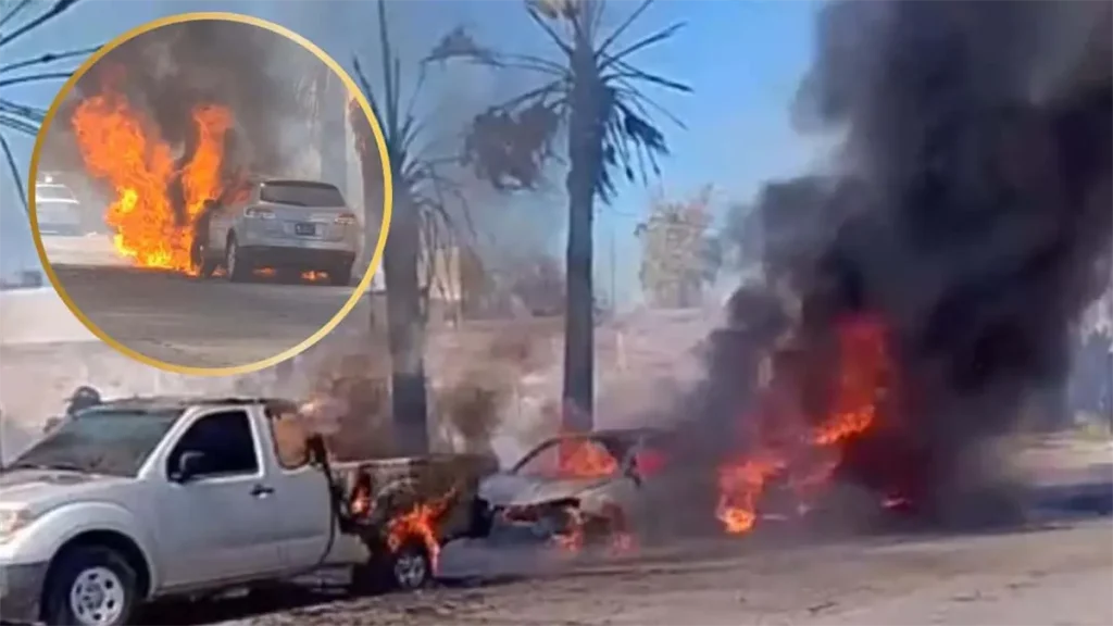 Incendio consume tres vehículos afuera del ISSSTE en Los Mochis