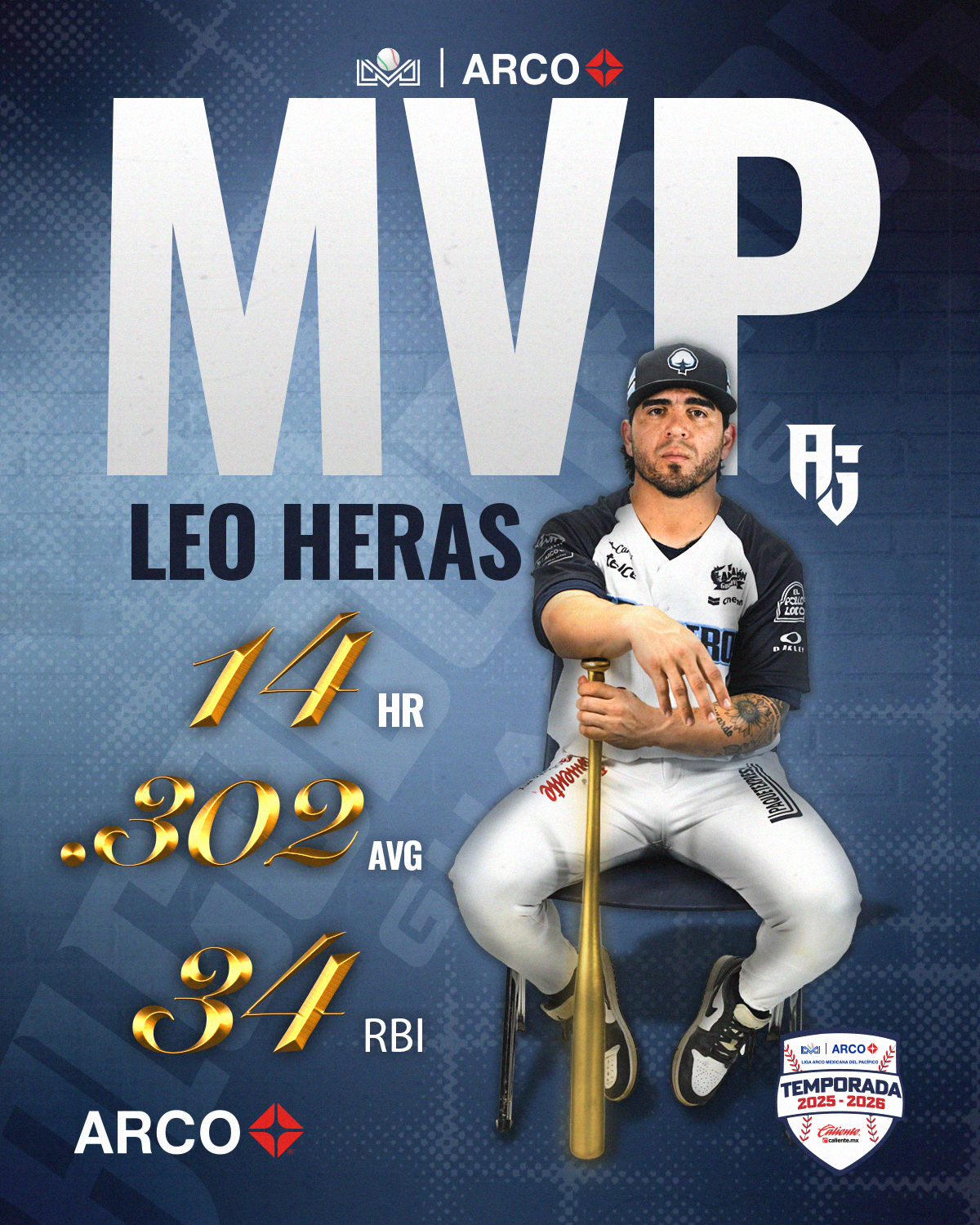 Guadalajara, Jalisco (Comunicación Liga ARCO). – Por primera ocasión en su carrera, Leo Heras, gana el Trofeo “Héctor Espino” entregado al Jugador Más Valioso de la campaña, esto por lo hecho en el rol regular de la Temporada 2025-2026 presentada por Caliente.mx.