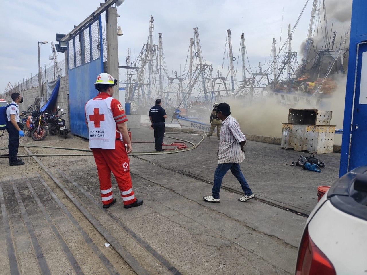 Tres personas que se encontraban trabajando en un barco camaronero en Mazatlán resultaron lesionadas en el incendio de la embarcación tras la acumulación de gases derivada de los trabajos de soldadura.