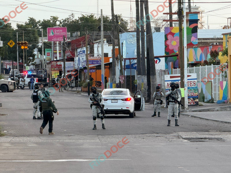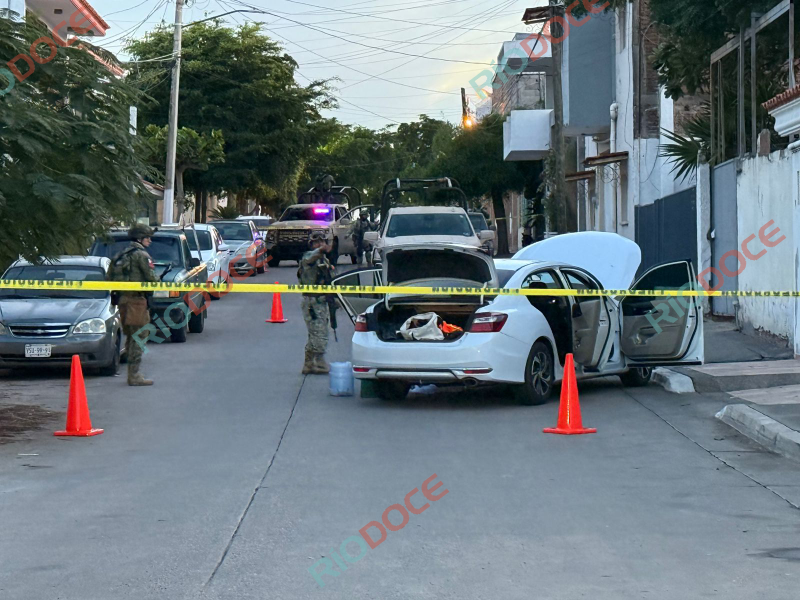 Un hombre sin vida al interior de un vehículo, una mujer herida, dos autos abandonados con impactos de arma de fuego y una unidad del Ejército dañada por ponchallantas deja una persecución en la colonia Tierra Blanca, en Culiacán.