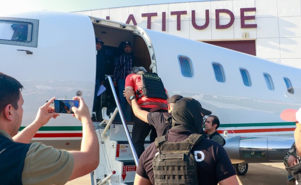 Aterriza en Toluca el avión que traslada a Hernán Bermúdez, líder de “La Barredora”