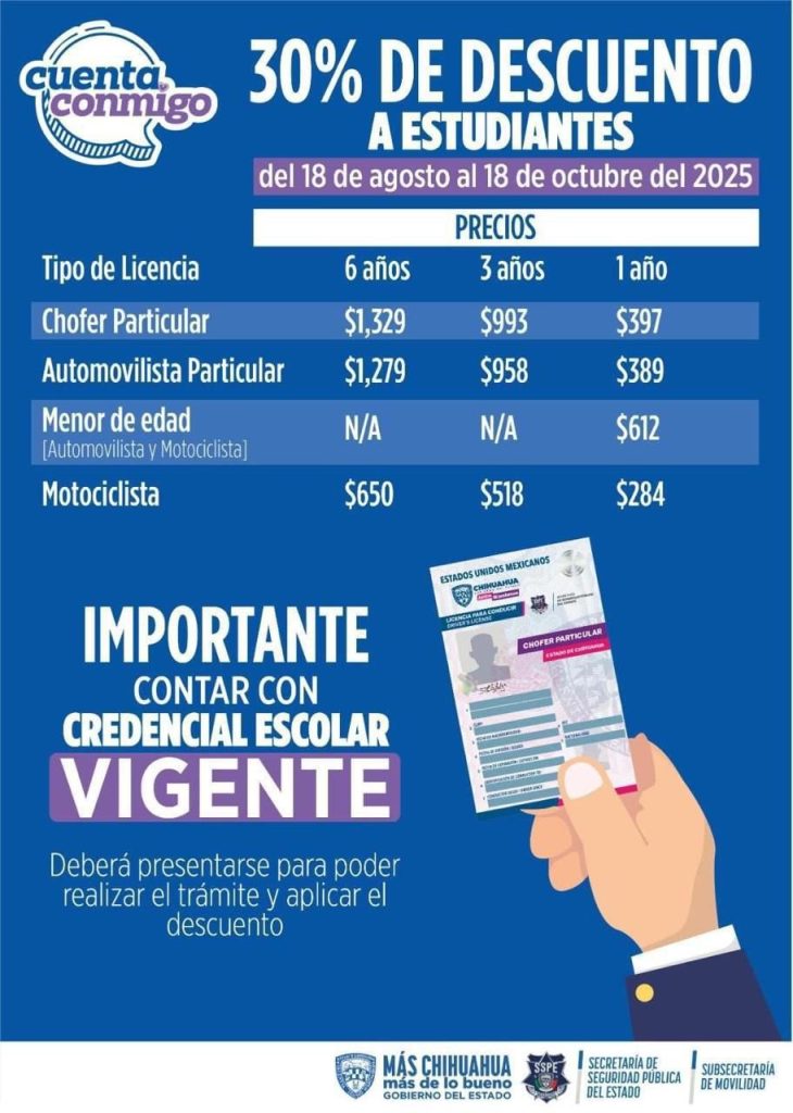 Publicidad H. Cd. de Chihuahua.– Como parte de las acciones para acercar servicios esenciales a la ciudadanía, la Secretaría de Seguridad Pública del Estado (SSPE) llevó el pasado viernes la Unidad Móvil de Licencias a los campus del Instituto de Ingeniería y Tecnología (IIT) y del Instituto de Arquitectura, Diseño y Arte (IADA) de la […]
