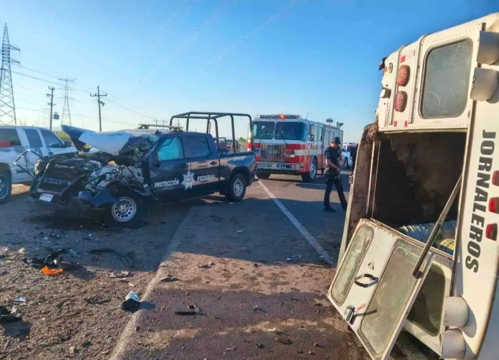 Choque entre unidad de Protección Federal y camión de jornaleros deja cinco lesionados en la carretera a Janos