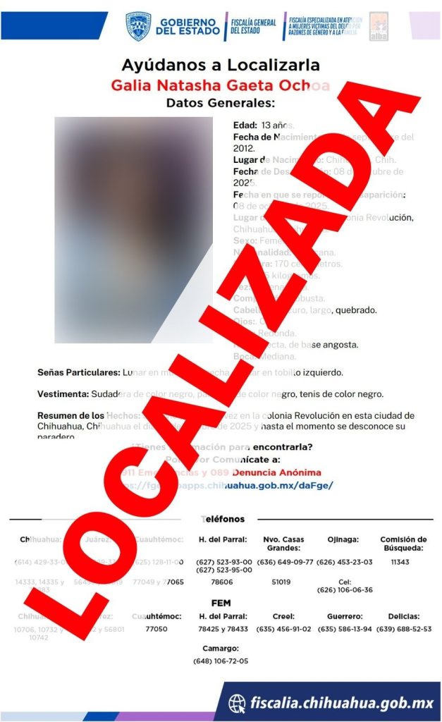 En horas, localizan a adolescente que contaba con reporte de ausencia en Chihuahua