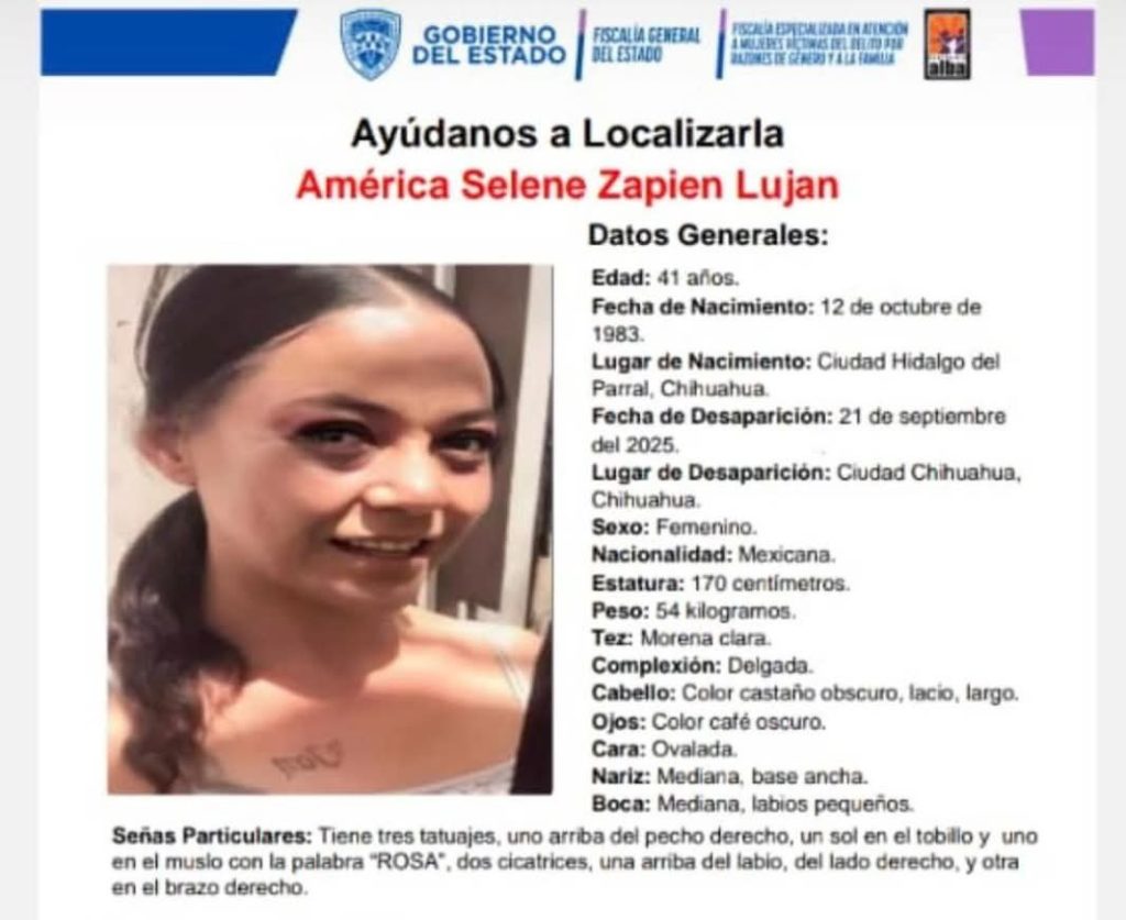 Publicidad Ciudad Juárez, Chih.- El cuerpo de una mujer encontrado enterrado en el patio de una vivienda en la colonia Villas de Alcalá fue identificado de manera extraoficial como el de América Selene Zapién Luján, de 41 años, quien contaba con reporte de desaparición en la ciudad de Chihuahua desde el pasado 21 de septiembre […]