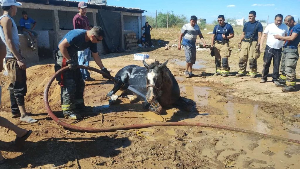 Bomberos rescatan a una yegua ciega que cayó en una fosa séptica en la colonia Agrícola