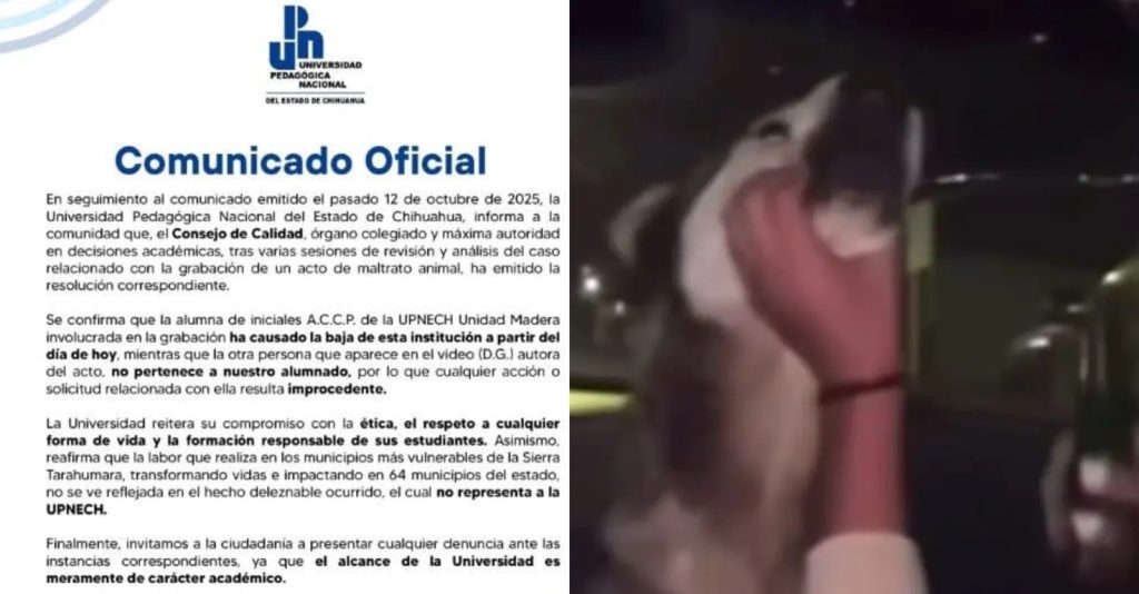 Publicidad H. Cd de Chihuahua.- La Universidad Pedagógica Nacional del Estado de Chihuahua (UPNECH) decidió dar de baja a una estudiante de la Unidad Madera después de que se difundiera un video donde se ve a una joven obligando a un perro a beber cerveza. La institución informó que, tras analizar el caso, el Consejo […]