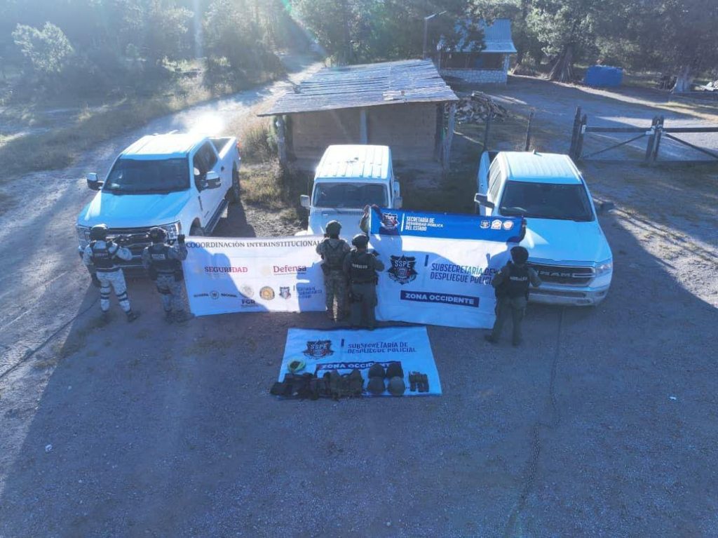 Asegura vehículos, equipo táctico y medio kg de marihuana en Guachochi
