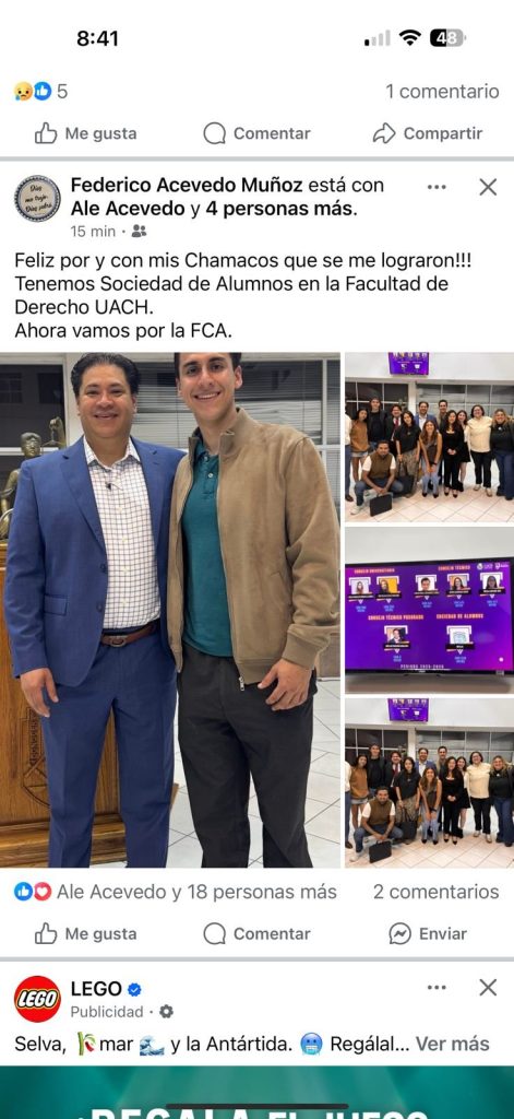 Publicidad El triunfo de la fórmula encabezada por Fernando Mejía en la sociedad de alumnos de la Facultad de Derecho de la UACH ha sido objeto de una ola de oportunismo político, luego de que distintos funcionarios estatales han intentado adjudicarse el resultado como si hubieran participado en la campaña. Entre ellos destaca Federico Acevedo […]