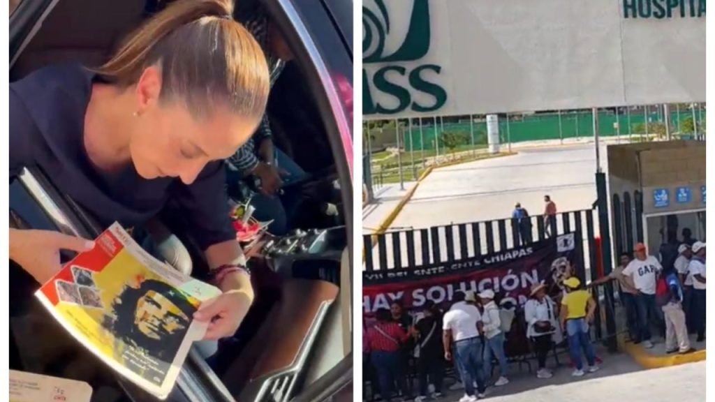 La presidenta atendió a una comisión de maestros desde la ventanilla de su camioneta antes de ingresar al Hospital General de Zona No. 13 “14 de Septiembre” del IMSS.