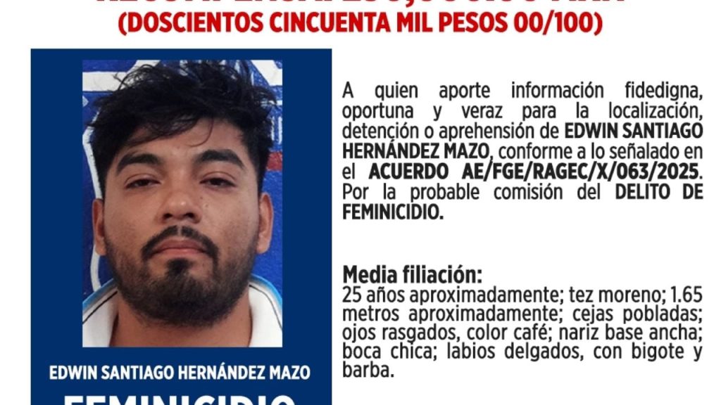 Fiscalía de Tabasco ofrece recompensa de 250 mil pesos por presunto feminicida